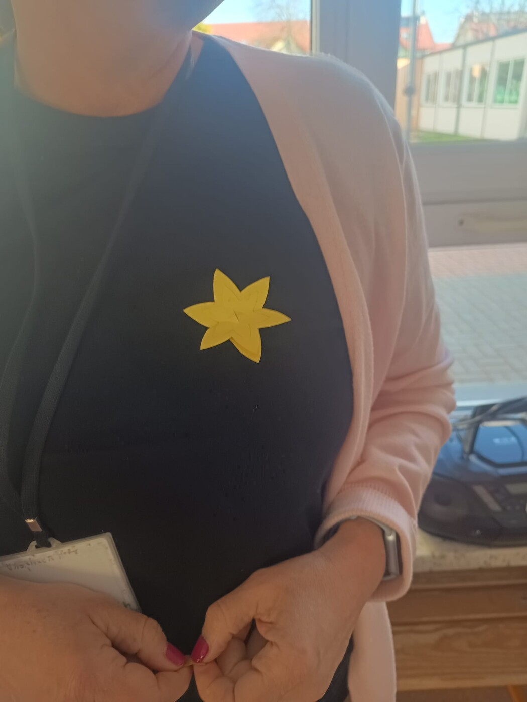 Uczniowie naszej szkoły uczcili rocznicę wybuchu powstania w getcie warszawskim, biorąc udział w akcji „Żonkile”. To inicjatywa społeczno-edukacyjna, której symbolem jest papierowy żonkil – znak pamięci o bohaterach powstania z 1943 roku. W ramach akcji młodzież przygotowała i przypięła żółte kwiaty uczniom, nauczycielom i przedszkolakom.