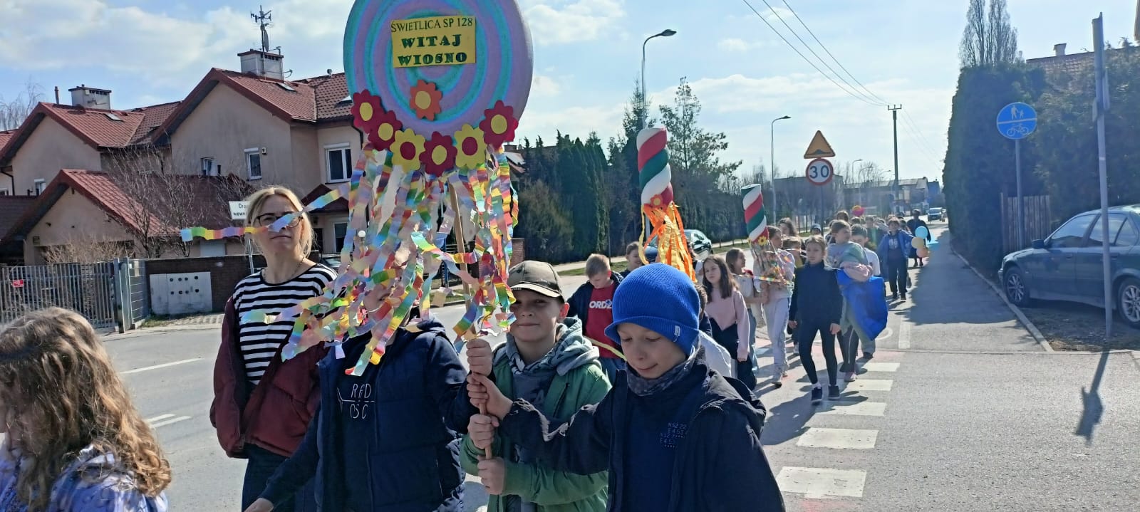 Dzieci z klas 1–3 radośnie powitały pierwszy dzień wiosny, biorąc udział w barwnym marszu ulicami osiedla. Wydarzenie miało nie tylko charakter wiosennego świętowania, ale również niosło ważne przesłanie. Motywem przewodnim było hasło „Małe kroki do wielkiego spokoju”, które podkreśla znaczenie codziennych, drobnych działań wpływających na dobre samopoczucie i harmonię. Uśmiechy, kolorowe stroje i pozytywna energia najmłodszych uczestników sprawiły, że to wyjątkowe wydarzenie na długo pozostanie w pamięci całej społeczności.