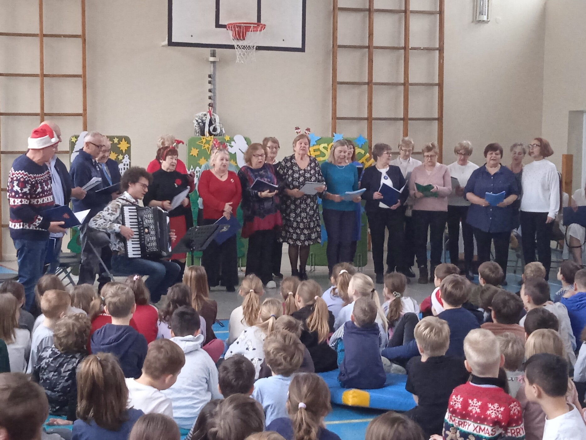 18 grudnia, w naszej szkole odbył się wyjątkowy koncert z udziałem rodziców oraz seniorów. Seniorzy z Wawerskiego Klubu Seniora oraz przedstawiciele Rady Rodziców zaprezentowali uczniom piękne kolędy i pastorałki, tworząc niezwykle ciepłą, świąteczną atmosferę. Dzieci z radością i dużym zaangażowaniem dołączały do występujących, a wspólne kolędowanie sprawiło, że wydarzenie stało się prawdziwie integrującym, międzypokoleniowym spotkaniem.
